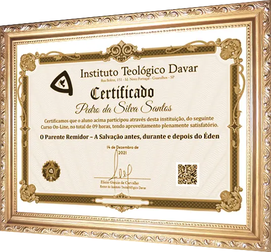 Todos nossos Certificados são assinados digitalmente com selo de Qualidade! Ao finalizar seu Curso, com apenas um clique você poderá gerar seu certificado e baixar em PDF. Você poderá imprimir o Certificado de uma das mais conceituadas Escolas Teológicas da América Latina.